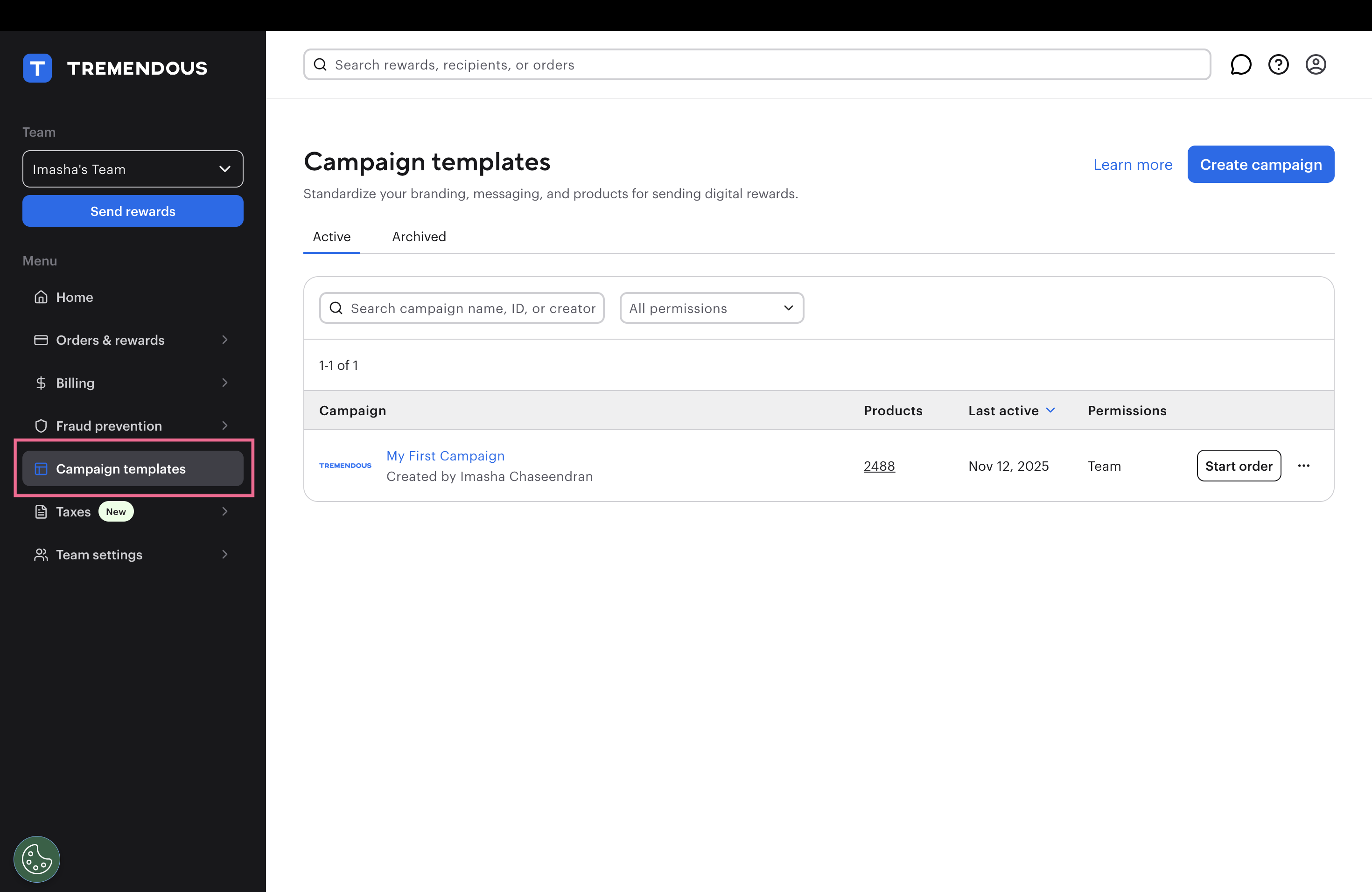 Campaigns are reusable templates that group together design, copy, and product selection settings for rewards. They're useful when you're sending similar rewards to different recipients over time.