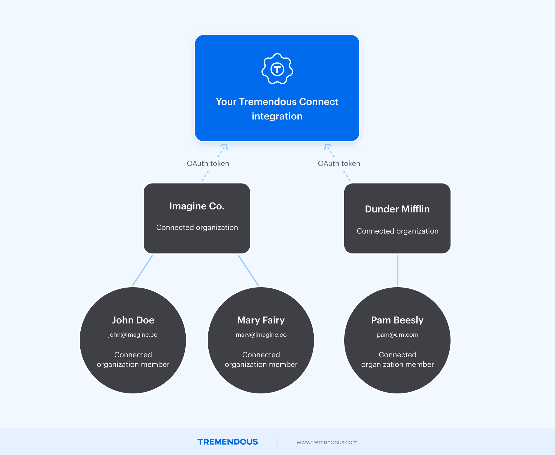Connected organization membersA connected organization represents an organization that has connected to your Tremendous Connect integration.